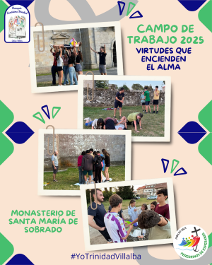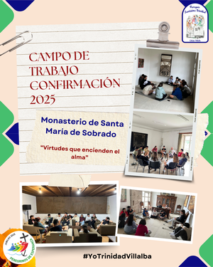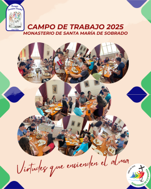 Este año hemos vuelto a comenzar nuestra actividad de verano con la ilusión de quien se pone en camino, sabiendo que algo bueno está por nacer. El lugar elegido ha sido el Monasterio de Santa María de Sobrado, un espacio sereno, escondido entre la naturaleza, donde los monjes del Císter nos han acogido con la sencillez que brota de quienes viven anclados en lo esencial. Durante estos días compartiremos con ellos trabajo, oración y vida, y lo haremos bajo un lema que es una invitación real: “Virtudes que encienden el alma”. Queremos dejarnos tocar por la vida de algunos santos y santas que supieron vivir en verdad, con hondura, con pasión por el Evangelio, y permitir que algo de esas virtudes también despierte en nosotros.