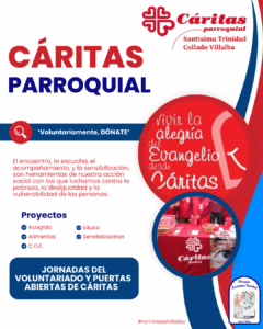 Con estas jornadas queremos dar a conocer todo lo que Cáritas hace, pero también invitar a la comunidad parroquial a formar parte de esta misión compartida. Porque el voluntariado no es un añadido, sino una vocación al servicio del Reino. Detrás de cada proyecto hay nombres, rostros, historias. Personas que se donan, que cuidan, que sostienen.