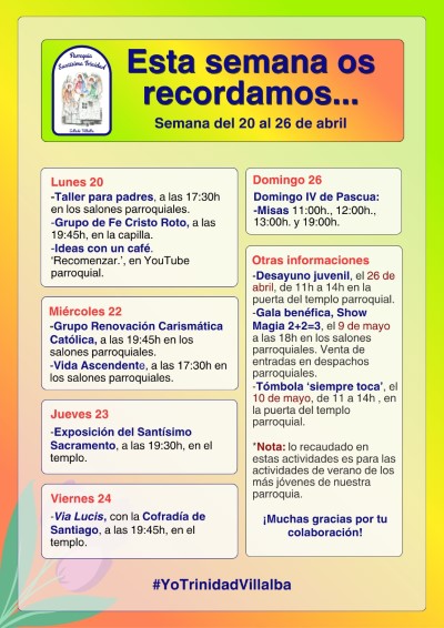 El jueves 13 de junio podremos disfrutar de un concierto en nuestra Parroquia Santísima Trinidad. (más…)