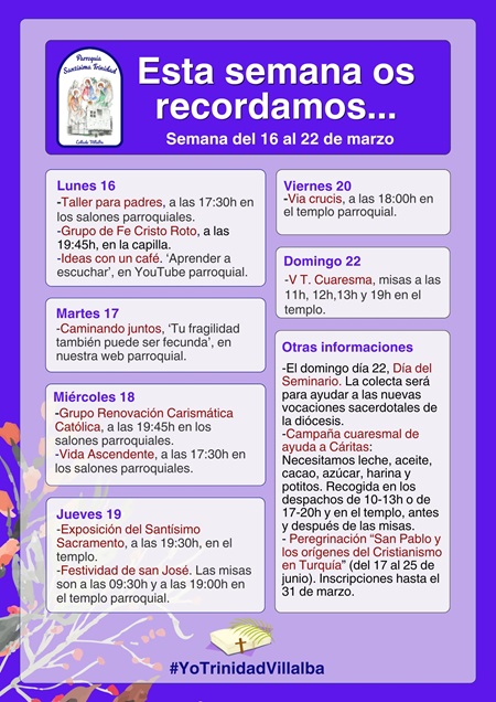 En la parroquia continuamos con las sesiones formativas que se han preparado para este curso 2021-2022. Estas charlas formativas suelen tener una periodicidad quincenal y se realizan los martes, a las 19:45h, en los salones parroquiales.