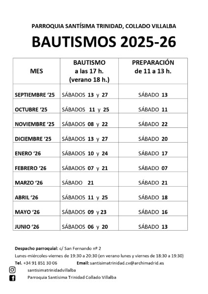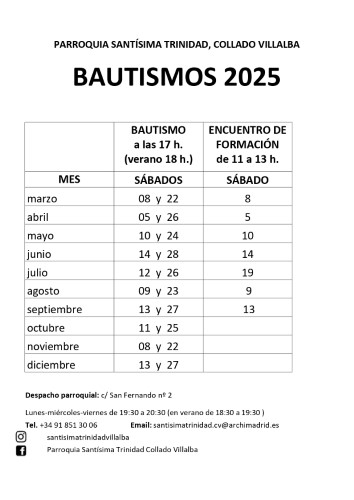 - La SOLICITUD DE BAUTISMO cumplimentada de forma completa.