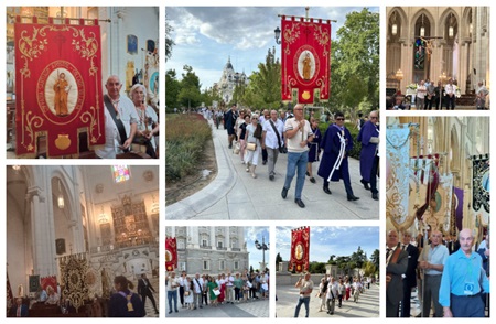 Celebramos el Jubileo de las Hermandades y Cofradías en la Catedral de la Almudena el 13 de septiembre. Tras una oración en el templo nacional de Santa Teresa de Jesús (PP Carmelitas de Plaza de España) y la procesión con los estandartes de todas las Cofradías de Madrid que quisieron participar, llegamos hasta la catedral; donde se celebró la eucaristía presidida por nuestro Arzobispo José Cobo