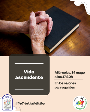 El grupo de Vida Ascendente se reunirá a las 17:30h en los salones parroquiales. Una actividad dirigida a personas mayores que buscan compartir la riqueza de su fe y su experiencia de vida en un ambiente fraterno y cercano.