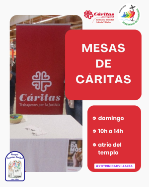 Para finalizar las II Jornadas de Cáritas Párroquial, el próximo domingo 25 tendremos a los miembros de Cáritas fuera del templo, dando a conocer la actividad de Cáritas, anotando voluntarios. Por otra parte, tenemos a vuestra disposición folios de inscripción como donante para Cáritas parroquial. Recordemos que este tipo de donaciones gozan de la desgravación fiscal.