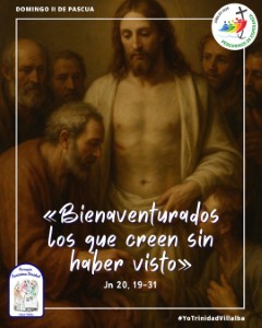 Los discípulos estaban reunidos con las puertas cerradas, el miedo los envolvía. Pero en medio de su temor, Jesús se hace presente y les regala su paz. Tomás, sin embargo, no estaba con ellos aquella vez. No le basta con el testimonio de los demás, necesita ver, tocar, comprobar por sí mismo. Jesús no le rechaza por dudar, sino que le invita a acercarse, a poner su mano en sus heridas, a encontrarse con Él. Y en ese encuentro, Tomás proclama la fe más grande: «Señor mío y Dios mío». Jesús le responde con una bienaventuranza que nos alcanza a nosotros: «Dichosos los que creen sin haber visto». Quizás aún no vemos claro en nuestra vida, en nuestra familia, en el mundo, pero bienaventurados seremos si nos mantenemos firmes en fiarnos con esperanza de que Dios actuará.