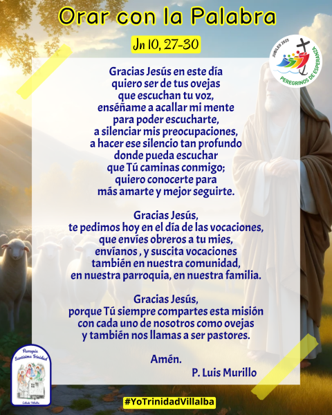 También os compartimos una reflexión, que nos podría ayudar a continuar orando con el Evangelio de hoy, y que podrás encontrar en la Hoja Dominical del IV Domingo de Pascua