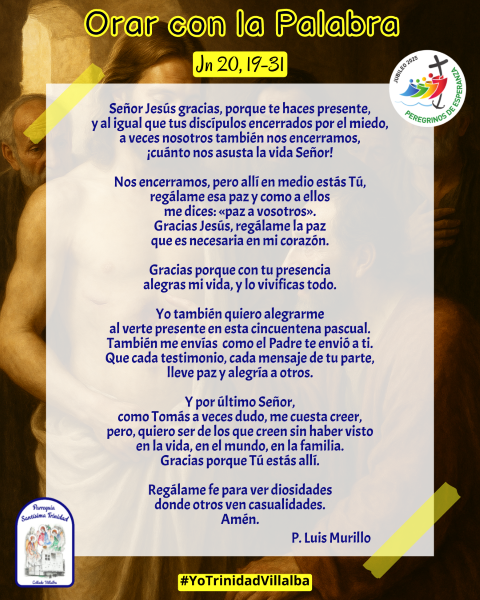También os compartimos una reflexión, que nos podría ayudar a continuar orando con el Evangelio de hoy, y que podrás encontrar en la Hoja Dominical del II Domingo de Pascua