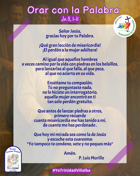 El evangelio de hoy Domingo V del tiempo Cuaresma es Jn 8, 1-11