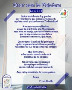 El evangelio de hoy Domingo XXX del tiempo ordinario es Lc 18, 9-14