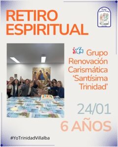 Bajo el lema “Y cayendo de rodillas le adoraron”, el Grupo Renovación Carismática ‘Santísima Trinidad’ vivió el sábado 24 de enero un retiro espiritual en nuestra parroquia, en una jornada marcada por la alabanza, la fraternidad y la presencia del Señor. En este encuentro, el grupo celebró también con gratitud sus seis años de vida, un camino recorrido por la gracia de Dios y sostenido en comunidad.