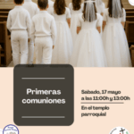 A las 11:00h y a las 13:00h se celebrarán misas de primeras comuniones, en la parroquia.
